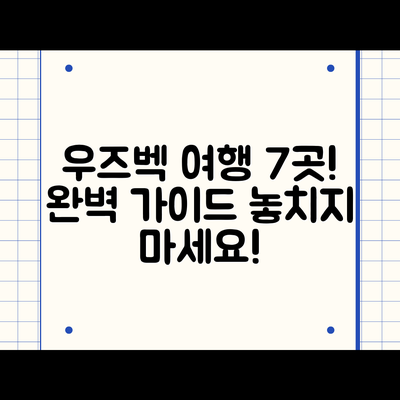 이러한 관광명소들을 통해 우즈베키스탄의 진정한 매력을 발견하고, 여행을 더욱 풍성하게 만드세요. 이렇게 실질적인 정보가 있다면 여행 계획이 한결 수월해질 것입니다.
